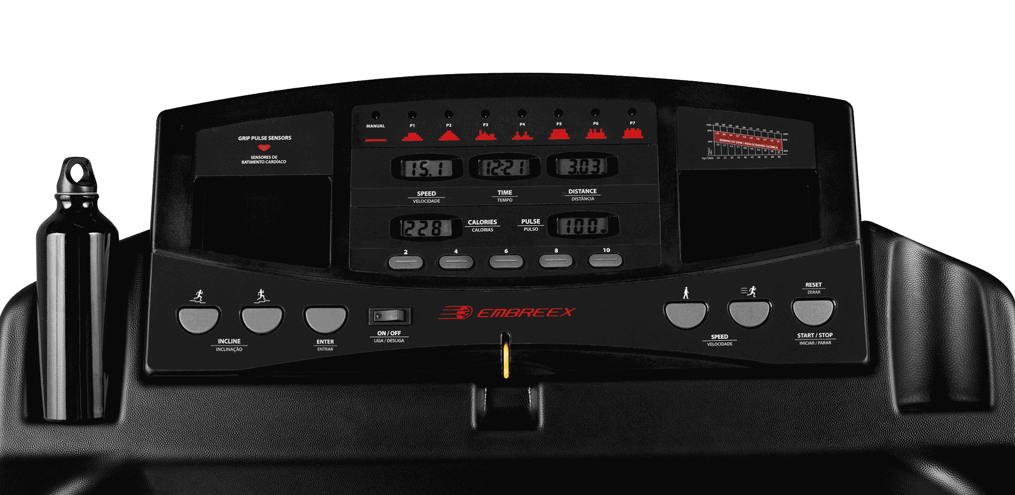 - Multifunctional and intuitive panel with 5 LCD displays. - 8 training programs with sound indicators. - Cardiac monitoring by grip pulse and telemetry. - 2 squeeze holders and 2 wide holders for accessories. - Heart rate and calorie burn graph for user reference....
