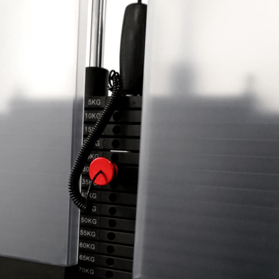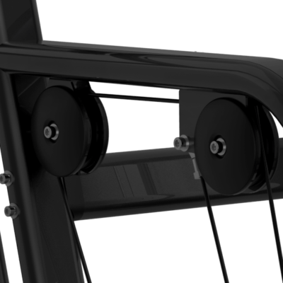 – Bloques de pesos en acero, con tacos deslizantes en polímero que proporcionan movimientos suaves.