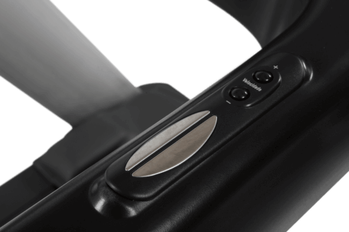 Pega-mãos anatômicos com sensores de monitoramento cardíaco e comandos extras de velocidade e inclinação.