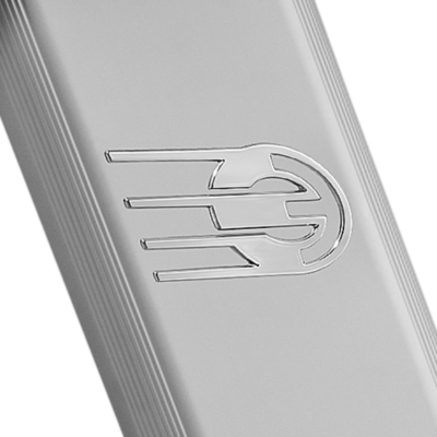 Perfil de alumínio anodizado com detalhes cromados.